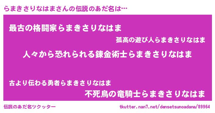 | 男性向けラノベタイトル風あだ名 | 『魔法科高校のらまきさりなはま』 |