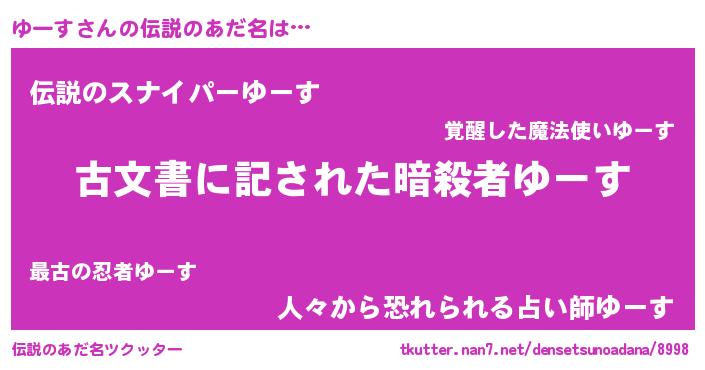 | ヘコむあだ名 | 『ゆーす(笑)』『ゆーにー』 |