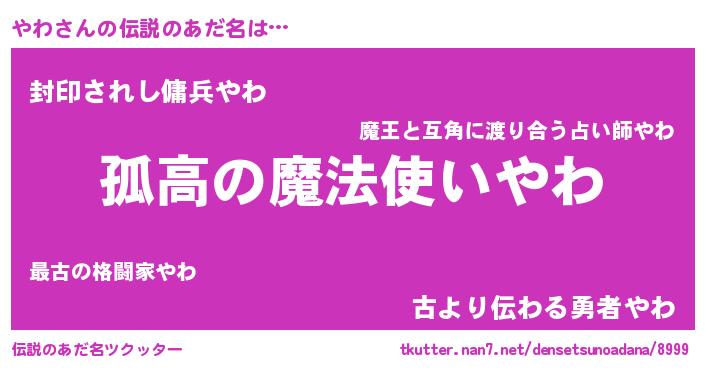 | 胡散臭い通販商品みたいなあだ名 | 『信頼と実績のサプリメント…その名も「やわ」』 |