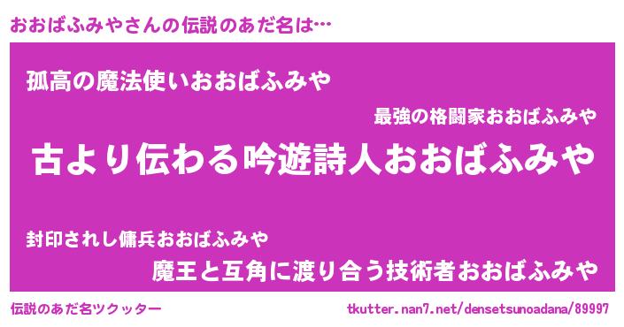 | 意味不明あだ名 | 『永久保存おおばふみや』 |