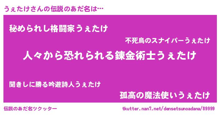 | ヒーロー風カッコイイあだ名 | 『友情の使者うぇたけ』『暗黒騎士ウェ』 |