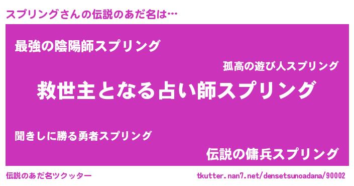 | 女子向けラノベタイトル風あだ名 | 『死神スプリングの再婚』 |