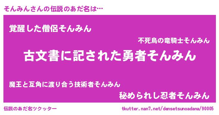 | 意味不明あだ名 | 『永久保存そんみん』『自称そんみん』 |