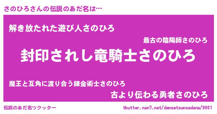 | 男性向けラノベタイトル風あだ名 | 『うちのさのひろが世界を掌握している!』 |