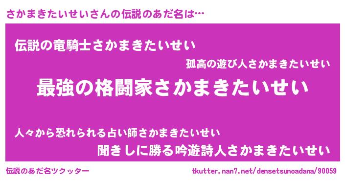 | ヒーロー風カッコイイあだ名 | 『仮面サカダー』『ネオサカマキタイセイ』 |