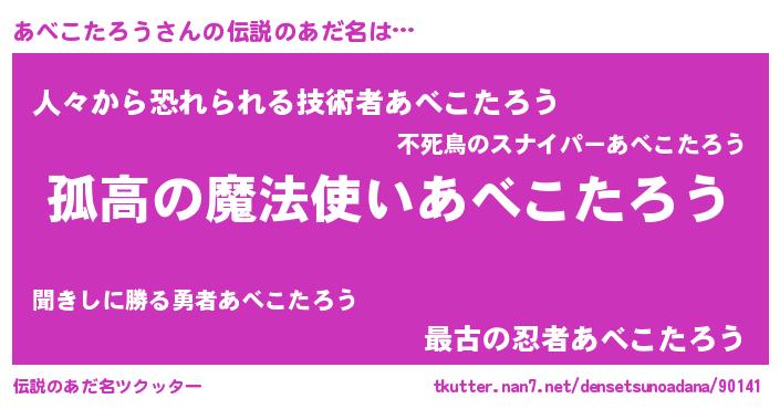 | 意味不明あだ名 | 『住所不定無職あべこたろう(2歳)』 |