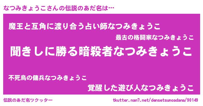 | 意味不明あだ名 | 『永久保存なつみきょうこ』 |