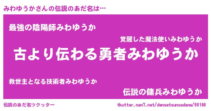 | ヒーロー風カッコイイあだ名 | 『最強戦士ミワユウカ』『ネオミワユウカ』 |
