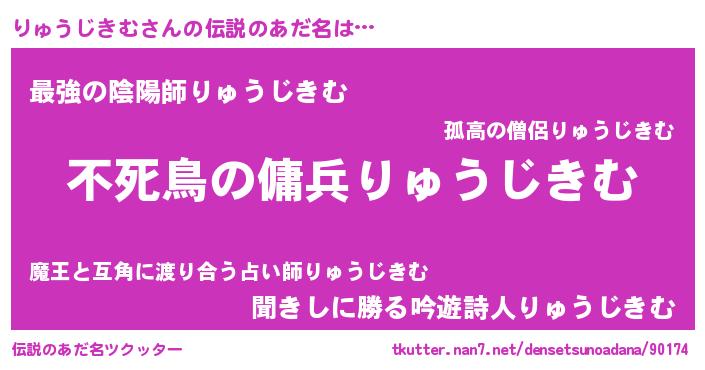 | 男性向けラノベタイトル風あだ名 | 『Re:りゅうじきむから始める異世界生活』 |