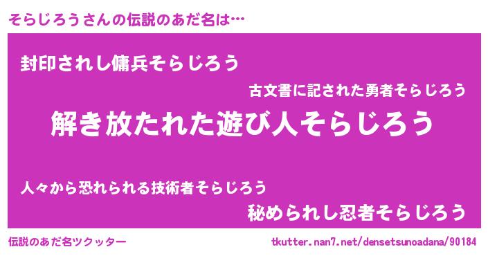 | ヒーロー風カッコイイあだ名 | 『幻影騎士ソラ』『究極戦士ソラジロウ』 |