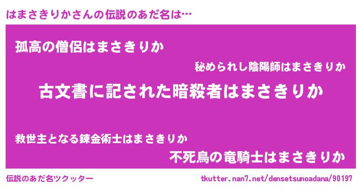 | 意味不明あだ名 | 『住所不定無職はまさきりか(68歳)』 |