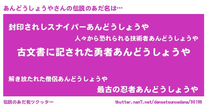 | 意味不明あだ名 | 『自称あんどうしょうや』 |