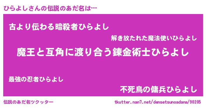 | 意味不明あだ名 | 『住所不定無職ひらよし(95歳)』 |