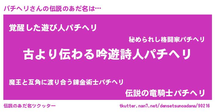 | ヒーロー風カッコイイあだ名 | 『ネオパチヘリ』『超時空戦士パチヘリ』 |