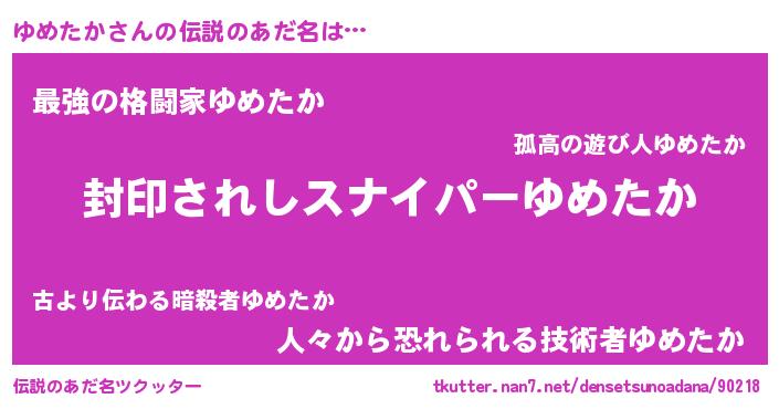 | ファンタジー風あだ名 | 『ユメフェル』『エターナルユメタカー』 |