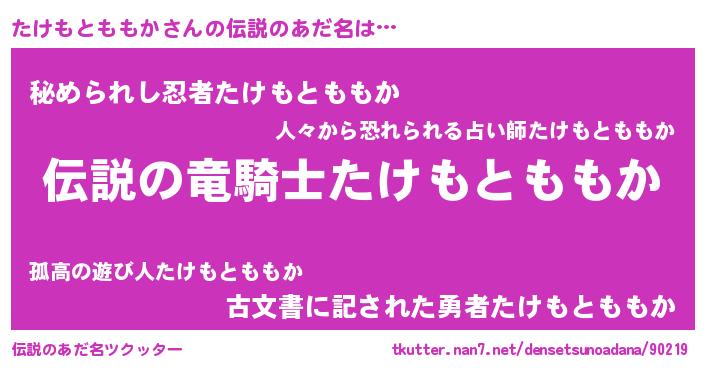| ヒーロー風カッコイイあだ名 | 『超時空戦士タケモトモモカ』 |