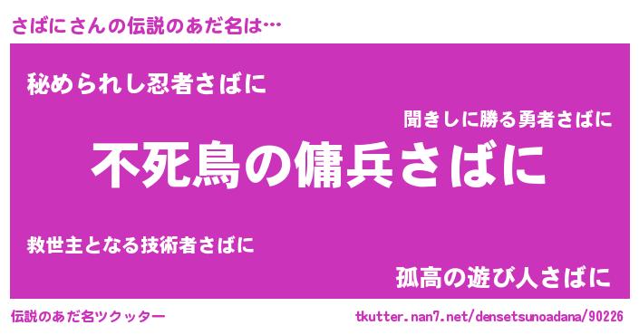| ヒーロー風カッコイイあだ名 | 『スーパーサバニ』『ウルトラさばにマン』 |