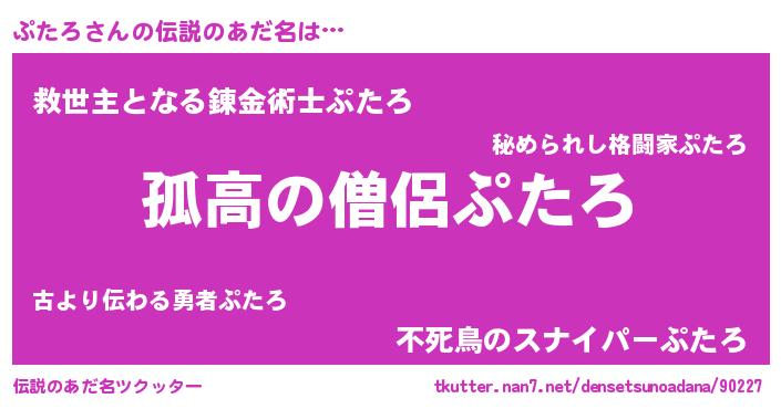 | 女子向けラノベタイトル風あだ名 | 『ぷたろは平凡を望む』『闇のぷたろ』 |