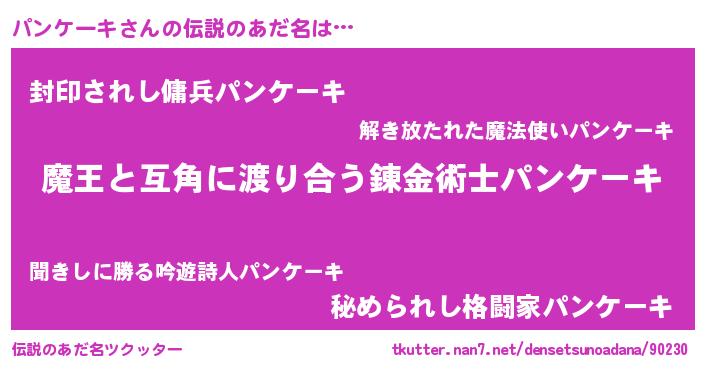| ヒーロー風カッコイイあだ名 | 『愛の使者パンケーキ』『銀牙騎士パン』 |
