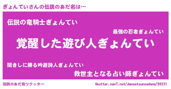 | 男性向けラノベタイトル風あだ名 | 『ぎょんていの嫁は女の子じゃないと思った?』 |
