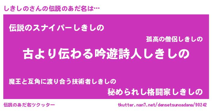 | 男性向けラノベタイトル風あだ名 | 『しきしのという概念が存在しない退屈な世界 』 |