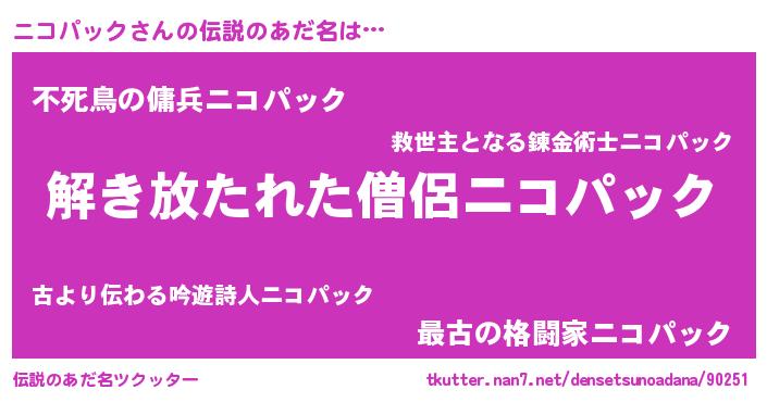| 意味不明あだ名 | 『自称ニコパック』『ペロリンニコパック』 |