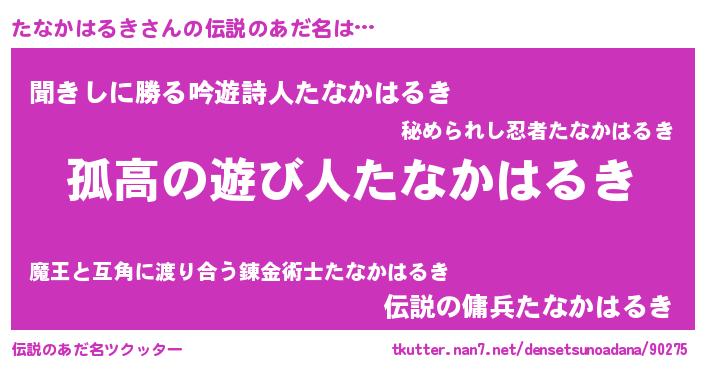 | ヒーロー風カッコイイあだ名 | 『ウルトラ戦士タナカハルキ』 |