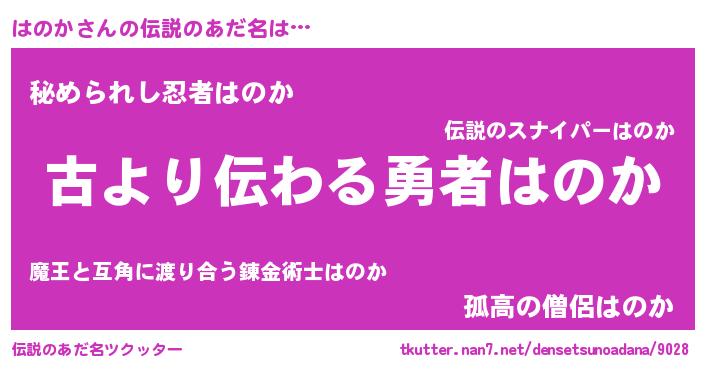 | 男性向けラノベタイトル風あだ名 | 『はのかという概念が存在しない退屈な世界 』 |