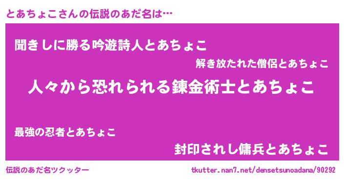 | ヒーロー風カッコイイあだ名 | 『友情の使者とあちょこ』『仮面トアダー』 |