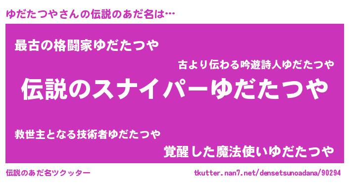| 意味不明あだ名 | 『住所不定無職ゆだたつや(77歳)』 |