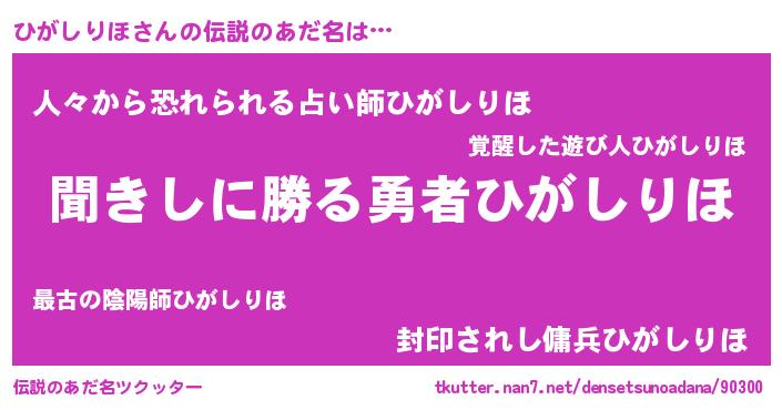| 意味不明あだ名 | 『住所不定無職ひがしりほ(74歳)』 |