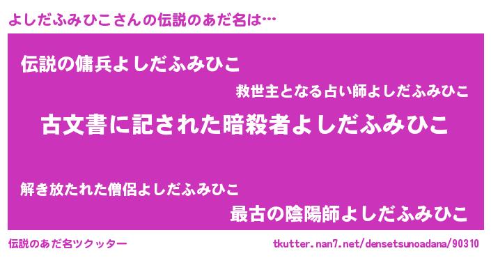 | 意味不明あだ名 | 『永久保存よしだふみひこ』 |
