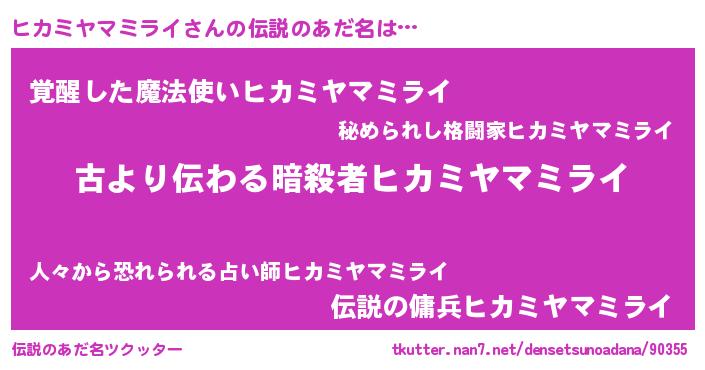 | 肩書あだ名 | 『ヒカミヤマミライ中尉』 |