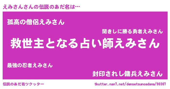 | ヘコむあだ名 | 『えみ太郎』『えみっふぃ~』 |