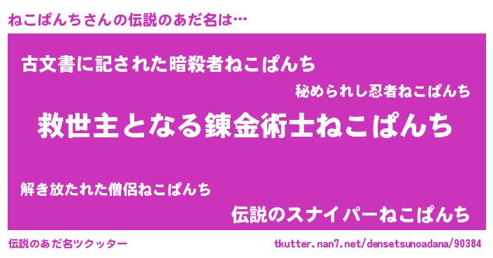 | ヒーロー風カッコイイあだ名 | 『仮面ネコダー』『天空の使者ねこぱんち』 |