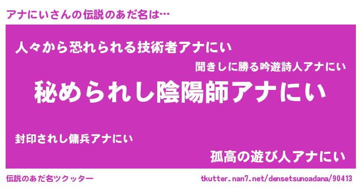 | 意味不明あだ名 | 『アナにいフォーエバー』『自称アナにい』 |