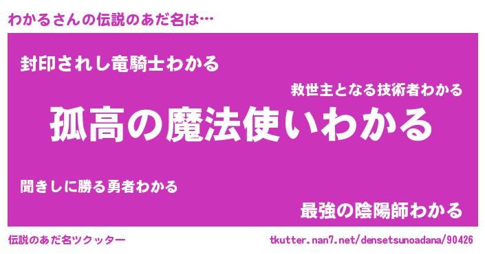 | 男性向けラノベタイトル風あだ名 | 『ワカルスレイヤー』 |