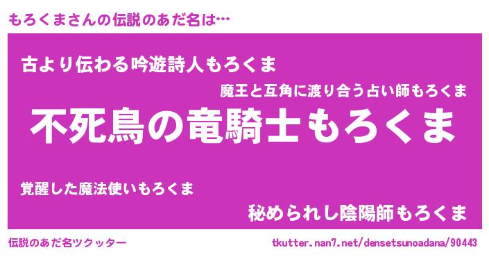 | ヘコむあだ名 | 『もろふぇ~』『もろくま(小並感)』 |