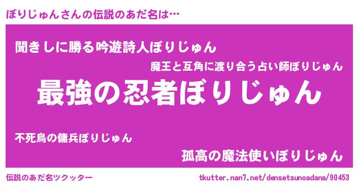 | 意味不明あだ名 | 『自称ぼりじゅん』『永久保存ぼりじゅん』 |