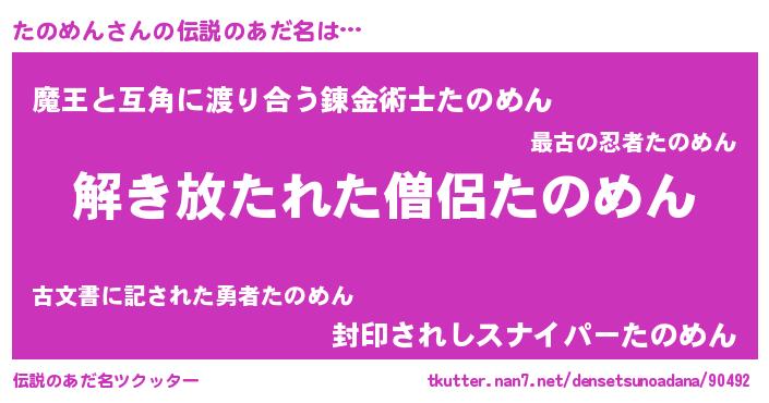 | 男性向けラノベタイトル風あだ名 | 『ダンジョンにたのめんを求めるのは間違っているだろうか』 |