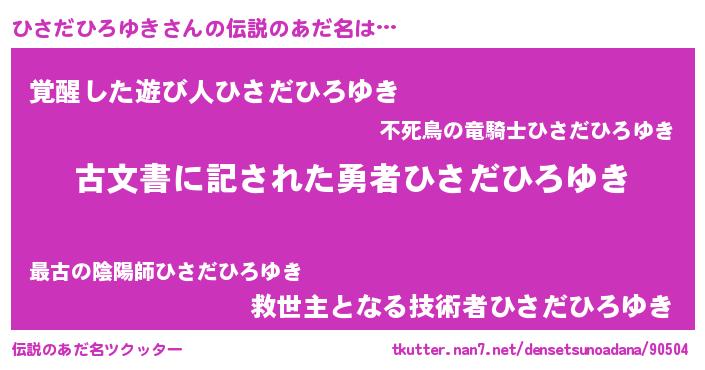 | ヒーロー風カッコイイあだ名 | 『ネオヒサダヒロユキ』『仮面ヒサダー』 |