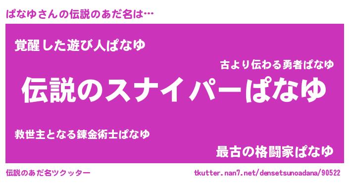 | ヒーロー風カッコイイあだ名 | 『ウルトラ戦士パナユ』『スーパーパナユ』 |