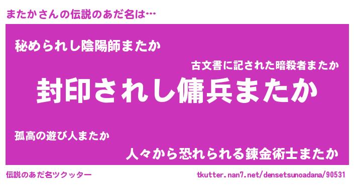 | 女子向けラノベタイトル風あだ名 | 『またかの玉の輿計画!』『闇のまたか』 |