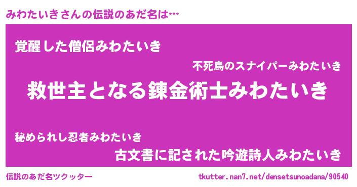 | ヒーロー風カッコイイあだ名 | 『慈愛の使者みわたいき』『仮面ミワダー』 |
