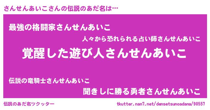 | 意味不明あだ名 | 『とにかく怪しいさんせんあいこ』 |