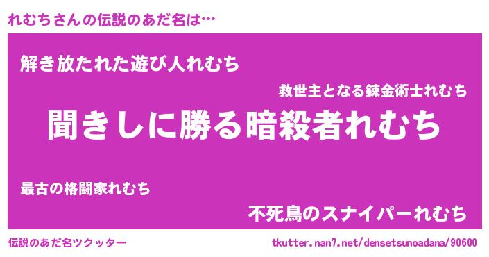 | 意味不明あだ名 | 『住所不定無職れむち(65歳)』『自称れむち』 |