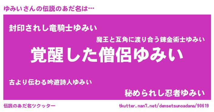 | ヒーロー風カッコイイあだ名 | 『究極戦士ユミイ』『炎刃騎士ユミ』 |