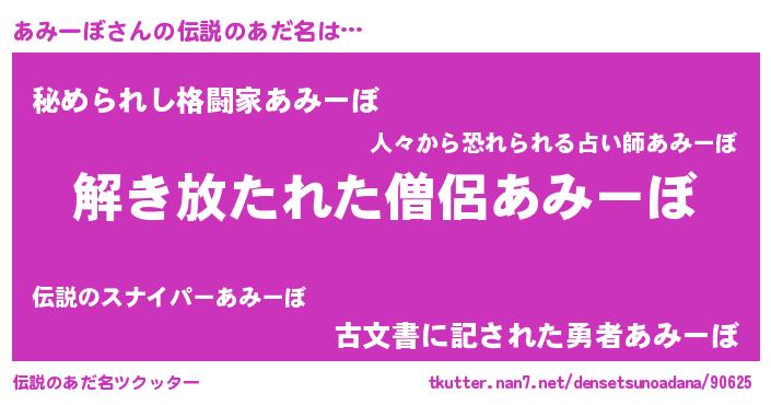 | ヒーロー風カッコイイあだ名 | 『仮面アミダー』『銀牙騎士アミ』 |