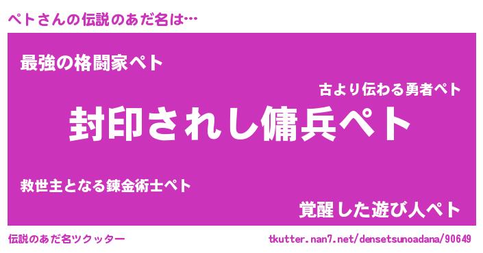 | ヒーロー風カッコイイあだ名 | 『スーパーペト』『ウルトラペトマン』 |