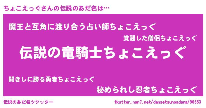 | 男性向けラノベタイトル風あだ名 | 『ちょこえっぐの憂鬱』 |